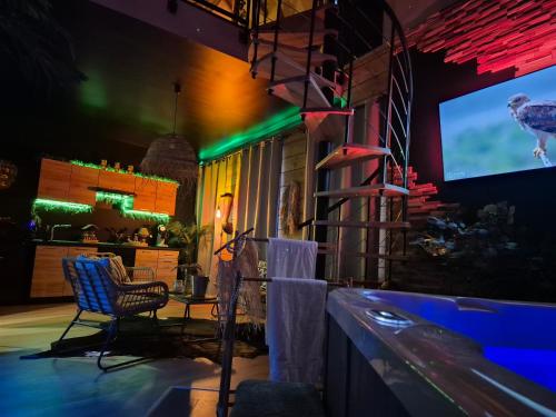 ![]() ![]() This luxurious apartment features a hot tub, a spa bath and a fireplace. Boasting a private entrance, this spacious apartment also features 1 bedroom, a seating area and 1 bathroom with a walk-in shower and a hairdryer. Meals can be prepared in the kitchen, which has a stovetop, a refrigerator, kitchenware and an oven. This apartment has air conditioning, soundproof walls, flat-screen TV with streaming services, as well as chocolate for guests. The unit has 1 bed. |