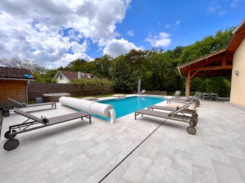 Situé à Sort-en-Chalosse, l’hébergement Villa Bota Nova offre une vue sur le lac. Il possède une piscine extérieure ouverte en saison, un jardin et une connexion Wi-Fi gratuite. Cette villa comprend un parking privé gratuit et se trouve dans une région où vous pourrez pratiquer des activités telles que la pêche et le ping-pong. Disposant d’une terrasse et offrant une vue sur la piscine, cette villa comprend 6 chambres, un salon, une télévision à écran plat par satellite, une cuisine équipée, ainsi que 5 salles de bains avec une douche et un bain à remous. Des serviettes et du linge de lit sont à disposition. L’établissement Villa Bota Nova dispose d’un bain à remous. Vous séjournerez à respectivement 10 km et 8,8 km de ces lieux d’intérêt : Gare de Dax et Sainte-Marie Cathedral. L'aéroport le plus proche (Aéroport de Biarritz-Pays basque) est à 67 km. |