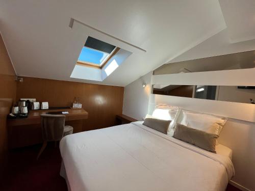 ![]() ![]() Cette chambre mansardée dispose d'une salle de bains privative, d'une connexion Wi-Fi gratuite et d'une télévision à écran plat. Cet hébergement est doté d’une salle de bains privative. Situé au 7ème étage, cet hébergement est accessible par un ascenseur s’arrêtant au 6ème étage puis par des escaliers. Cette chambre ne peut accueillir ni lit bébé, ni lit d’appoint. |