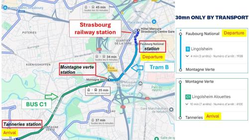 L’hébergement Chambre nature chez l'habitant vous accueille à Strasbourg, à respectivement 4,7 km, 5,2 km et 6,5 km de ces lieux d’intérêt : La Petite France, Musée historique de Strasbourg et Zénith de Strasbourg. Il comprend un balcon et une connexion Wi-Fi gratuite. Occupant un bâtiment datant de 2018, cet hébergement chez l'habitant est à respectivement 7,1 km et 7,5 km de : Jardin botanique de l'Université de Strasbourg et Cathédrale Notre-Dame de Strasbourg. Des serviettes et du linge de lit sont à votre disposition. Vous séjournerez à respectivement 7,7 km et 8,2 km de ces lieux d’intérêt : Église Saint-Paul de Strasbourg et Parc des expositions de Strasbourg. L'aéroport le plus proche (Aéroport de Strasbourg Entzheim) est à 6 km. |