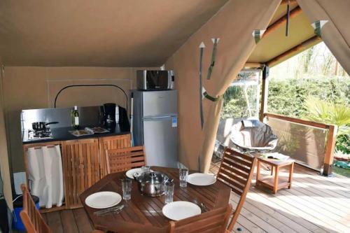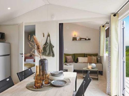 ![]() ![]() ![]() ![]() Featuring a private entrance, this air-conditioned mobile home consists of 2 bedrooms and 1 bathroom with a shower. In the well-equipped kitchen, guests will find a stovetop, a refrigerator, a dishwasher and kitchenware. Boasting a terrace, this mobile home also provides an electric kettle and a TV. The unit offers 3 beds. |