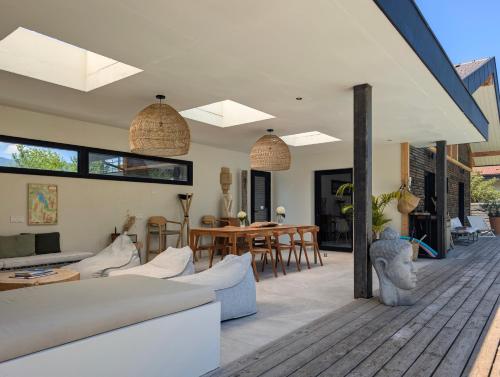 Situé à Talloires, l’hébergement Villa contemporaine avec piscine, vues panoramiques lac & montagnes, climatisation offre une vue sur la montagne. Il propose une piscine extérieure, une terrasse et une connexion Wi-Fi gratuite. Cette villa comprend un parking privé gratuit et se trouve dans une région où vous pourrez pratiquer des activités telles que la randonnée, le ski et le vélo. Cette villa avec climatisation se compose de 5 chambres, d'un salon, d'une cuisine entièrement équipée avec un réfrigérateur et une machine à café, ainsi que de 4 salles de bains avec une douche et des articles de toilette gratuits. Des serviettes et du linge de lit sont disponibles. Vous séjournerez à respectivement 39 km et 42 km de ces lieux d’intérêt : Halle Olympique d'Albertville et Rochexpo. |