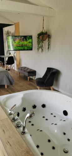 L’hébergement L'Essentiel - Love 5 Etoiles se situe à Talmont-Saint-Hilaire, à seulement 7,1 km de ce lieu d’intérêt : Club de Golf de Port Bourgenay. Il possède un service de prêt de vélos, une salle de sport, un jardin et une connexion Wi-Fi gratuite. Cette maison de vacances comprend un parking privé gratuit et se trouve dans une région où vous pourrez pratiquer des activités telles que la randonnée, la planche à voile et le billard. Cette maison de vacances comporte 1 chambre, 1 salle de bains, du linge de lit, des serviettes, une télévision à écran plat avec les chaînes du satellite, un coin repas, une cuisine entièrement équipée et une terrasse offrant une vue sur le jardin. Parlant anglais, espagnol et français, le personnel de la réception ouverte 24h/24 se fera un plaisir de vous aider à tout moment. L’établissement L'Essentiel - Love 5 Etoiles possède un spa et centre de bien-être contenant un bain à remous. Vous pourrez pratiquer la plongée sous-marine, la pêche et la plongée avec tuba dans les environs. L’établissement L'Essentiel - Love 5 Etoiles possède des installations de sports nautiques. Vous séjournerez à respectivement 18 km et 28 km de ces lieux d’intérêt : Golf des Olonnes et Golf Domangère. L'aéroport le plus proche (Aéroport de La Rochelle - Île de Ré) est à 86 km. |