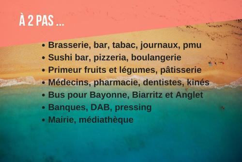 L’hébergement La Presque Basque offre une vue sur le jardin, à environ 30 km de ce lieu d’intérêt : Gare de Saint-Jean-de-Luz. Il propose un balcon et une machine à café. Cet hébergement est installé à 20 km de : Gare de Biarritz La Négresse. Il possède un jardin et un parking privé gratuit. Disposant d’une terrasse et offrant une vue sur la ville, cet appartement comprend 1 chambre, un salon, une télévision à écran plat, une cuisine équipée avec un réfrigérateur et un lave-vaisselle, ainsi que 1 salle de bains avec une douche. Des serviettes et du linge de lit sont à disposition. Vous séjournerez à respectivement 31 km et 44 km de ces lieux d’intérêt : Église Saint-Jean-Baptiste et Gare d'Hendaye. L'aéroport le plus proche (Aéroport de Biarritz-Pays basque) est à 12 km. |
