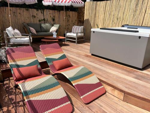 L’hébergement maison vue mer panoramique et jacuzzi offre une vue sur la mer, à environ 900 mètres de ce lieu d’intérêt : Plage de l’Aiguille. Il propose un balcon et une bouilloire. Cet hébergement est installé à 13 km de : Palais des festivals de Cannes. Il possède une connexion Wi-Fi gratuite et un service de concierge. Cette villa avec climatisation se compose de 3 chambres, d'un salon, d'une cuisine entièrement équipée avec un réfrigérateur et une machine à café, ainsi que de 3 salles de bains avec une douche et un bain à remous. Des serviettes et du linge de lit sont disponibles. L’établissement maison vue mer panoramique et jacuzzi dispose d’un bain à remous. Vous pourrez profiter d’une terrasse sur place et pratiquer la randonnée ainsi que la plongée avec tuba dans les environs. Vous séjournerez à respectivement 27 km et 30 km de ces lieux d’intérêt : Gare de Saint-Raphaël Valescure et Musée International de la Parfumerie. L'aéroport le plus proche (Aéroport de Nice-Côte d'Azur) est à 41 km. |