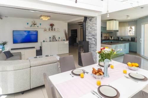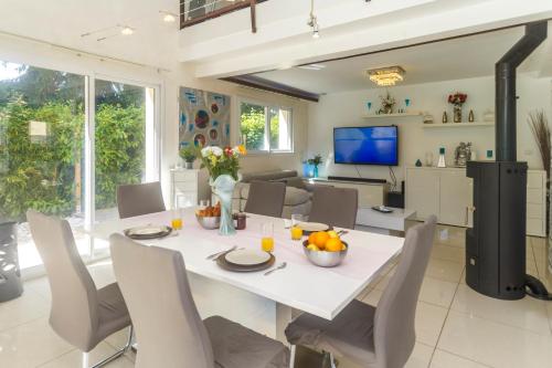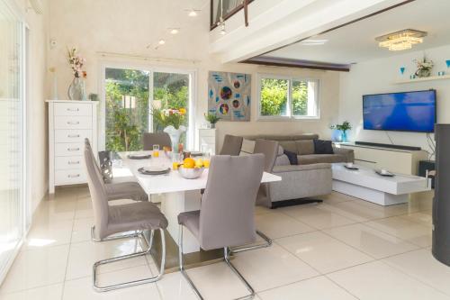 Offrant une vue sur le jardin, l’hébergement Villa du Leman propose un service de prêt de vélos, une piscine extérieure ouverte en saison et une terrasse, à environ 15 km de ce lieu d’intérêt : Evian Resort Golf Club. Cette villa comprend une piscine privée, un jardin, un barbecue, un parking privé gratuit et une connexion Wi-Fi gratuite. Proposant 4 chambres, cette villa avec climatisation compte 3 salles de bains avec une douche, une baignoire et un sèche-cheveux. Une télévision à écran plat avec les chaînes du câble est disponible. Vous pourrez pratiquer la randonnée dans les environs. Vous séjournerez à respectivement 29 km et 31 km de ces lieux d’intérêt : Jet d'eau de Genève et Gare de Cornavin. L'aéroport le plus proche (Aéroport de Genève - Secteur France) est à 36 km. Un service de navette aéroport payant peut être assuré par l’établissement. |