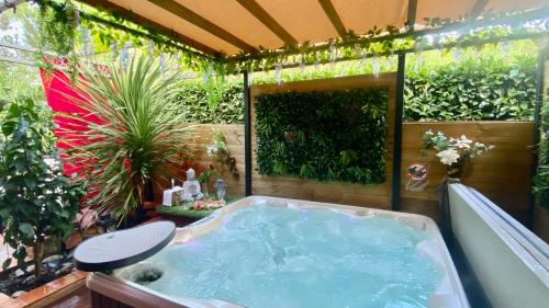 ![]() ![]() Guests will have a special experience as this apartment features a private pool, a hot tub and a spa bath. Meals can be prepared in the kitchen, which is fitted with a stovetop, a refrigerator, a dishwasher and kitchenware. The air-conditioned apartment offers a flat-screen TV, a washing machine, a tea and coffee maker, a seating area as well as garden views. The unit offers 1 bed. |