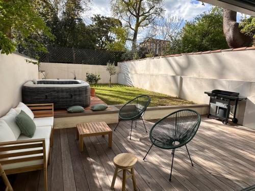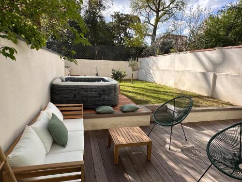 Situé à Toulouse, l’hébergement Villa du parc offre une vue sur le jardin. Il comprend une piscine extérieure ouverte en saison, un jardin, une terrasse et une connexion Wi-Fi gratuite. Cet hébergement avec climatisation est installé à 4,1 km de : Parc des expositions de Toulouse. Cette villa compte 1 chambre, une cuisine avec un réfrigérateur et un lave-vaisselle, une télévision à écran plat, un coin salon, ainsi que 2 salles de bains possédant une douche. Des serviettes et du linge de lit sont à votre disposition. L’établissement Villa du parc dispose d’un bain à remous. Vous séjournerez à proximité de ces lieux d’intérêt : Jardin Royal, Métro Capitole et Métro Jean-Jaurès. L'aéroport le plus proche (Aéroport de Toulouse-Blagnac) est à 10 km. |