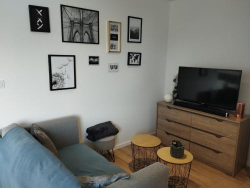 Appartement 1 Chambre    Boasting a private entrance, this apartment also includes 1 separate bedroom, 1 bathroom with a walk-in shower, a kitchen and a dining area. Guests can make meals in the kitchen that is fitted with a stovetop, a refrigerator, kitchenware and an oven. The apartment offers a flat-screen TV, a washing machine, a coffee machine, a seating area as well as garden views. The unit has 1 bed. | ||
