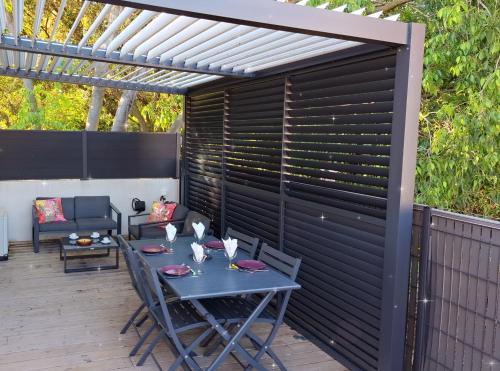 Situé à Uchaud, l’hébergement Lou Mazet offre une vue sur la piscine. Il comprend une piscine extérieure ouverte en saison, un jardin, une terrasse et une connexion Wi-Fi gratuite. Cet hébergement met à votre disposition une piscine privée et un parking privé gratuit. Cette maison de vacances avec climatisation se compose de 1 chambre, d'un salon, d'une cuisine entièrement équipée avec un réfrigérateur et une machine à café, ainsi que de 1 salle de bains avec une douche et un sèche-cheveux. Des serviettes et du linge de lit moyennant des frais supplémentaires. Vous pourrez pratiquer le vélo dans les environs. Vous séjournerez à respectivement 13 km et 38 km de ces lieux d’intérêt : Parc des expositions de Nîmes et Zénith Sud Montpellier. L'aéroport le plus proche (Aéroport de Nîmes Alès Camargue Cévennes) est à 17 km. |