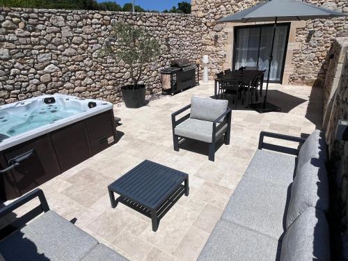Situé à Vagnas, l’hébergement Le Domaine du Grand Cru offre une vue sur le jardin. Il propose une piscine extérieure ouverte en saison, un jardin, une terrasse et une connexion Wi-Fi gratuite. Cette maison de vacances comprend un parking privé gratuit et se trouve dans une région où vous pourrez pratiquer des activités telles que la randonnée, la pêche et le vélo. Cette maison de vacances avec climatisation se compose de 2 chambres, d'un salon, d'une cuisine entièrement équipée avec un réfrigérateur et une machine à café, ainsi que de 2 salles de bains avec une douche et un bain à remous. Une télévision à écran plat avec les chaînes du câble et un lecteur Blu-ray sont disponibles. Cet établissement 5 étoiles dispose d’un bain à remous et d’un barbecue. Vous séjournerez à respectivement 17 km et 18 km de ces lieux d’intérêt : Pont d'Arc et Gorges de l'Ardeche. |