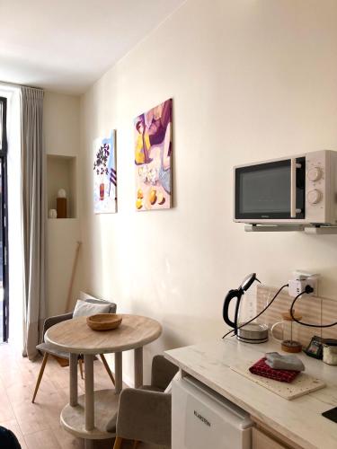 ![]() ![]() Cet appartement comprend une cuisine, un coin salon, 1 chambre séparée, ainsi que 1 salle de bains avec douche. La cuisine entièrement équipée est munie de plaques de cuisson, d’un réfrigérateur, d’un micro-ondes et d’ustensiles. Offrant une vue sur la cour intérieure, cet appartement dispose d'un plateau/bouilloire et de chocolat. Ce logement comprend 1 lit. |