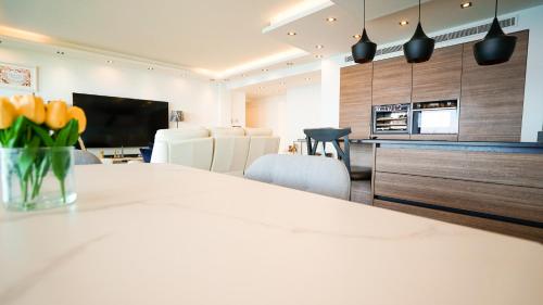 ![]() ![]() ![]() ![]() This apartment provides a private pool. This spacious apartment is comprised of 1 living room, 2 separate bedrooms and 1 bathroom with a hairdryer. The fully equipped kitchen features a stovetop, a refrigerator, a dishwasher and kitchenware. The air-conditioned apartment offers a flat-screen TV, a washing machine, a tea and coffee maker, a dining area as well as sea views. The unit offers 3 beds. |