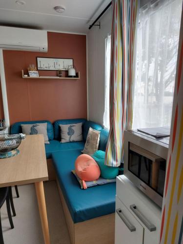 Mobile Home      Ce mobile home climatisé comprend 1 salon, 2 chambres séparées et 1 salle de bains avec une douche. Ce mobile home dispose d'un coin salon, d'une télévision à écran plat, d'un plateau/bouilloire, ainsi que d'un coin repas extérieur. Ce logement comporte 4 lits. | ||