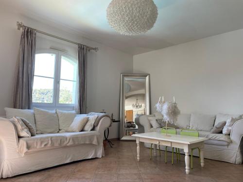 Villa avec Piscine Privée           This villa's standout features are the private pool and fireplace. Boasting a private entrance, this villa includes 2 living rooms, 4 separate bedrooms and 3 bathrooms with a bath and a shower. Guests will find a stovetop, a refrigerator, a dishwasher and kitchenware in the well-fitted kitchen. The villa also features a barbecue. The unit has a washing machine, garden views, a terrace and wine/champagne is offered for guests. The unit has 6 beds. | ||