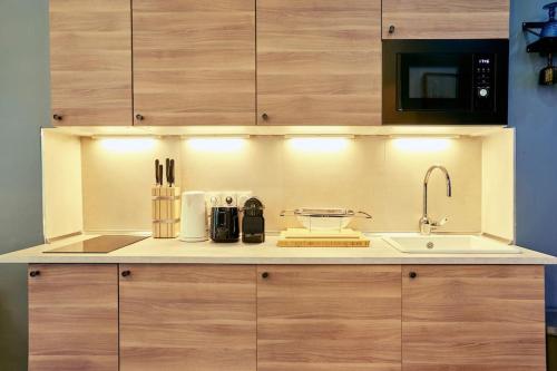 ![]() ![]() ![]() ![]() This luxurious apartment offers a hot tub, a spa bath and a sauna. Featuring a private entrance, this apartment comprises 1 living room, 1 separate bedroom and 1 bathroom with a shower and a hairdryer. The fully equipped kitchen features a stovetop, a refrigerator, kitchenware and a microwave. The apartment provides a flat-screen TV, a washing machine, a coffee machine, a dining area as well as a quiet street view. The unit offers 2 beds. |