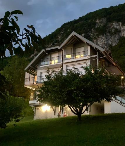 Situé à Veyrier-du-Lac, l’hébergement Casa Elisa offre une vue sur la montagne. Il comprend une piscine extérieure ouverte en saison, un jardin, une terrasse et une connexion Wi-Fi gratuite. Cet appartement possède un parking privé gratuit et se trouve dans une région où vous pourrez pratiquer des activités telles que la randonnée, le vélo et le ping-pong. Cet appartement comporte 2 chambres, une cuisine entièrement équipée avec un réfrigérateur et un micro-ondes, ainsi que 1 salle de bains avec une douche et des articles de toilette gratuits. Une télévision à écran plat est à votre disposition. Vous séjournerez à respectivement 38 km et 42 km de ces lieux d’intérêt : Rochexpo et Halle Olympique d'Albertville. |