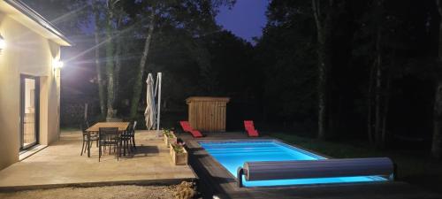 Situé à Veyrines-de-Domme, l’hébergement La Maison des Chênes offre une vue sur la piscine. Il propose une piscine extérieure ouverte en saison, un jardin, une terrasse et une connexion Wi-Fi gratuite. Cet hébergement met à votre disposition une piscine privée et un parking privé gratuit. Cette maison de vacances compte 2 chambres, une cuisine avec un réfrigérateur et un lave-vaisselle, une télévision à écran plat, un coin salon, ainsi que 1 salle de bains comportant une douche. Des serviettes et du linge de lit sont disponibles. Vous séjournerez à respectivement 20 km et 48 km de ces lieux d’intérêt : Gare de Sarlat-la-Canéda et Grottes de Lascaux. L'aéroport le plus proche (Aéroport Bergerac Dordogne Périgord) est à 57 km. |