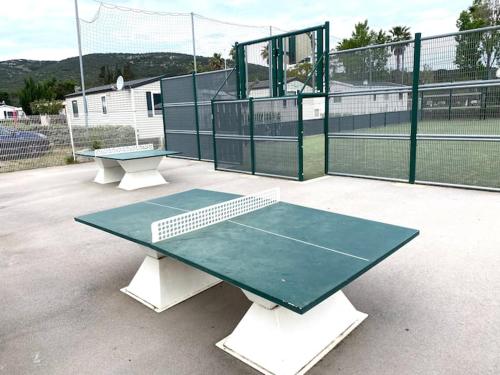 Offrant une vue sur le jardin, l’établissement Mobilhome 3 chambres Clim 6 Personnes se trouve à Vic-la-Gardiole. Il propose un restaurant, un club pour enfants, un bar, un jardin, une piscine extérieure et une terrasse. Chaque hébergement comprend la climatisation. Vous bénéficierez d’une salle de bains privative, ainsi que d’une cuisine dotée d’un réfrigérateur, d’un micro-ondes, d’une plaque de cuisson et d’un grille-pain. Un coin salon et repas est présent dans tous les logements. Cet établissement dispose d’une aire de jeux pour enfants. Vous trouverez un parc aquatique sur place, et vous pourrez pratiquer la randonnée, la pêche et le vélo dans les environs. Vous séjournerez à respectivement 16 km et 18 km de ces lieux d’intérêt : GGL Stadium et Hôtel de ville de Montpellier. L'aéroport le plus proche (Aéroport Montpellier Méditerranée) est à 28 km. |