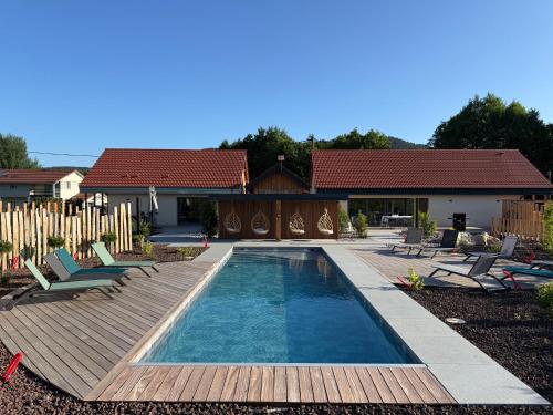 Situé à Vienville, l’hébergement Le domaine d Isa maison SELA propose une piscine extérieure ouverte en saison, un sauna et un bain à remous. Il dispose également d’une terrasse offrant une vue sur la piscine et le jardin. Cet hébergement met à votre disposition un balcon, une table de ping-pong, un parking privé gratuit et une connexion Wi-Fi gratuite. Cette maison de vacances compte 1 chambre, une cuisine avec un réfrigérateur et un lave-vaisselle, une télévision à écran plat, un coin salon, ainsi que 3 salles de bains possédant une douche. Des serviettes et du linge de lit sont à votre disposition. Un petit-déjeuner continental est servi sur place. Un jardin et une aire de jeux pour enfants sont disponibles dans l’établissement. Vous séjournerez à respectivement 20 km et 38 km de ces lieux d’intérêt : Lac de Gérardmer et Gare d'Épinal. L'aéroport le plus proche (Aéroport de Strasbourg Entzheim) est à 97 km. |