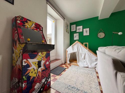 Le So Wild, maison avec jardin clos, terrasse aménagée, 5 mn à pied commerce, terrain de tennis, à 800 m de la plage d'Omaha beach jeux arcade, jouets, matériel jeunes enfants enfants, table ping-pong