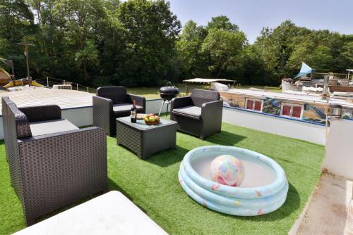 Situé à Vigneux-sur-Seine et offrant une vue sur le cours d’eau, l’établissement Peniche refuge Seine possède une piscine extérieure ouverte en saison, un jardin, un salon commun, une terrasse et un barbecue. Une connexion Wi-Fi gratuite est à disposition dans l’ensemble de ses locaux. Chaque hébergement possède une salle de bains commune avec une douche, la climatisation, une télévision à écran plat et un réfrigérateur. Des serviettes et du linge de lit moyennant des frais supplémentaires. Vous pourrez jouer au billard sur place, et pratiquer la randonnée et la pêche dans les environs. Vous séjournerez à respectivement 22 km et 23 km de ces lieux d’intérêt : Gare de Lyon et Opéra Bastille. L'aéroport le plus proche (Aéroport de Paris - Orly) est à 9 km. |