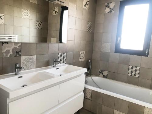 Situé à Villeneuve-de-la-Raho, l’hébergement Villa Plein Sud offre une vue sur le jardin. Il comprend une piscine extérieure ouverte en saison, un salon commun, une terrasse et une connexion Wi-Fi gratuite. Cette villa possède une piscine privée, un jardin et un parking privé gratuit. Cette villa avec climatisation se compose de 3 chambres, d'un salon, d'une cuisine entièrement équipée avec un réfrigérateur et une machine à café, ainsi que de 2 salles de bains avec une douche et un sèche-cheveux. Des serviettes et du linge de lit sont à votre disposition. Si vous souhaitez découvrir la région, vous aurez la possibilité de pratiquer la pêche et le vélo dans les environs. Un service de location de vélos est assuré sur place. Vous séjournerez à respectivement 14 km et 24 km de ces lieux d’intérêt : Stade Gilbert-Brutus et Château Royal de Collioure. L'aéroport le plus proche (Aéroport de Perpignan - Rivesaltes) est à 16 km. |