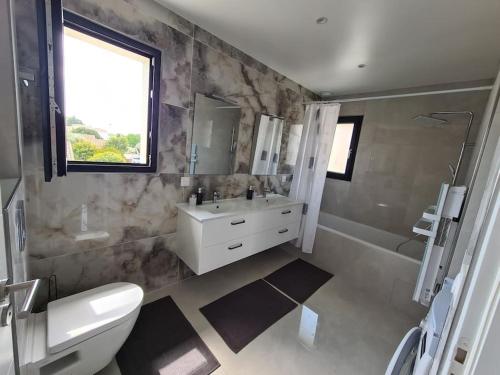 Situé à Villeneuve-lès-Maguelone, l’hébergement Magnifique Villa avec jacuzzi en option offre une vue sur le jardin. Il possède un jardin, une terrasse et une connexion Wi-Fi gratuite. Cette villa possède un parking privé gratuit et se trouve dans une région où vous pourrez pratiquer des activités telles que la randonnée et la pêche. Cette villa avec climatisation se compose de 3 chambres, d'un salon, d'une cuisine entièrement équipée avec un réfrigérateur et une machine à café, ainsi que de 2 salles de bains avec une douche et un bain à remous. Des serviettes et du linge de lit sont à disposition. Vous séjournerez à respectivement 5,4 km et 8,4 km de ces lieux d’intérêt : GGL Stadium et Opéra Orchestre national Montpellier Occitanie. L'aéroport le plus proche (Aéroport Montpellier Méditerranée) est à 19 km. |