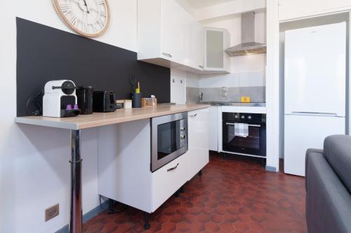 L’hébergement Le Cali, Terrase, Parking, Piscine, Clim vous accueille à Villeneuve-Loubet, à seulement 13 km de ce lieu d’intérêt : Stade Allianz Riviera. Il comprend une piscine extérieure ouverte en saison, une terrasse, un court de tennis et une connexion Wi-Fi gratuite. Cet hébergement met à votre disposition une table de ping-pong. Cet appartement avec climatisation se compose de 1 chambre séparée, d'une cuisine entièrement équipée avec un réfrigérateur et un four, ainsi que de 1 salle de bains. Une télévision à écran plat est à votre disposition. L’établissement possède une aire de jeux. Vous séjournerez à respectivement 14 km et 15 km de ces lieux d’intérêt : Cathédrale Saint-Nicolas de Nice et Gare de Nice-Ville. L'aéroport le plus proche (Aéroport de Nice-Côte d'Azur) est à 9 km.  |