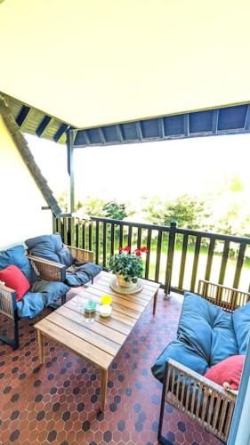 Situé à Villers-sur-Mer, l’hébergement La Brise du Clos, Grand 3 pièces, Piscine & Tennis propose une piscine privée et une connexion Wi-Fi gratuite. Cet hébergement est installé à 900 mètres de : Plage de Villers-sur-Mer. Il comprend une terrasse et un parking privé gratuit. Proposant un accès direct à un balcon avec vue sur le jardin, cet appartement comporte 2 chambres et une cuisine entièrement équipée. Une télévision à écran plat est à votre disposition. Vous séjournerez à respectivement 7,4 km et 8,8 km de ces lieux d’intérêt : Hippodrome de Deauville et Casino de Deauville. L'aéroport le plus proche (Aéroport de Deauville - Normandie) est à 14 km. |