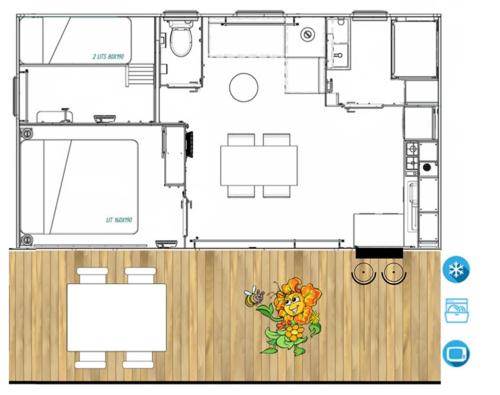 ![]() ![]() ![]() ![]() This bungalow is comprised of 1 living room, 2 separate bedrooms and 1 bathroom with a shower and free toiletries. The well-fitted kitchen has a stovetop, a refrigerator, a dishwasher and kitchenware. This bungalow features air conditioning, a tea and coffee maker, a flat-screen TV and a terrace. The unit offers 3 beds. |